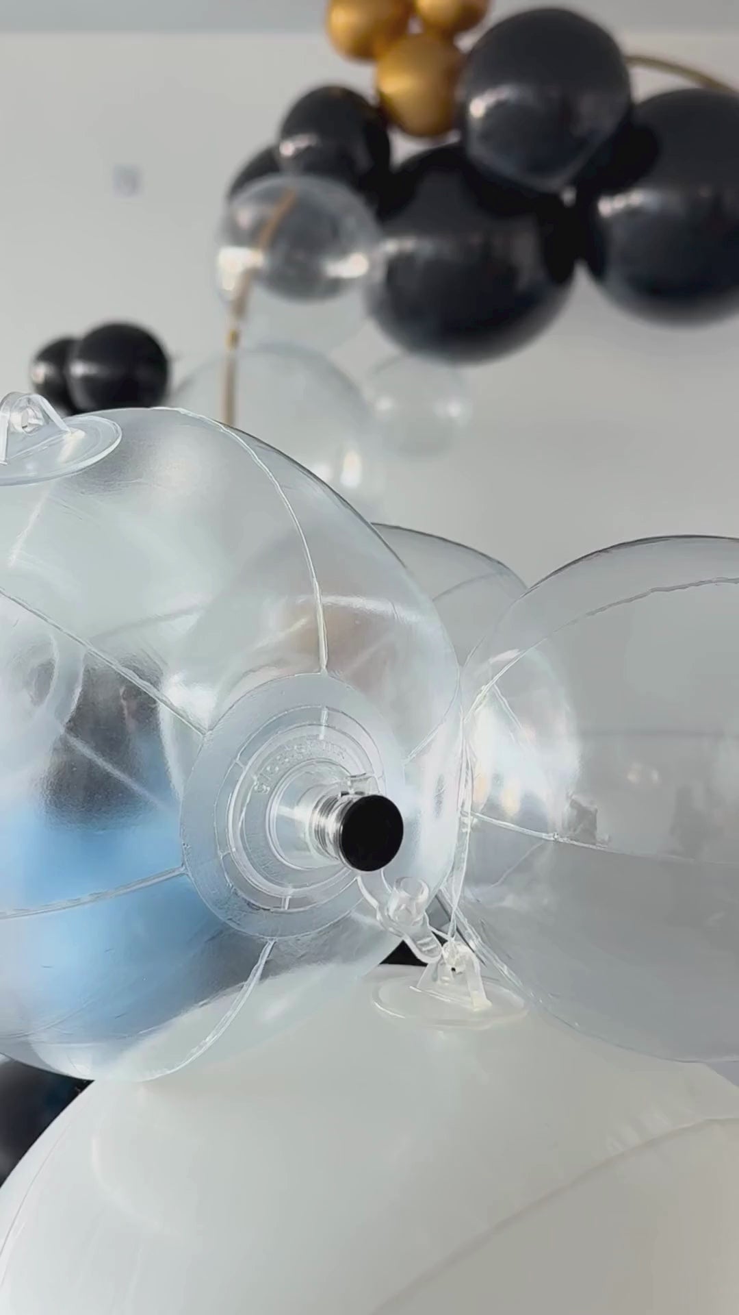 Los glosters ya vienen unidos en globos de 5 y de 3. Mediante una sola válvula se inflan, te recomendamos usar una bomba para inflar.